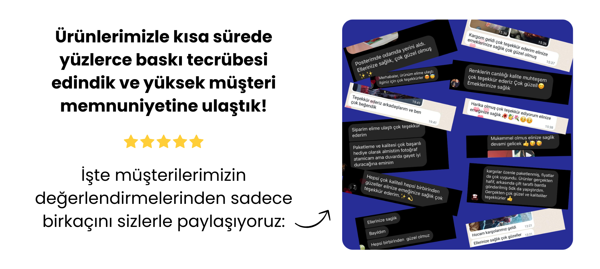 Tüm siparişlerinizi yoğunluğa bağlı olarak 2 ile 10 ''iş günü'' içinde özenle hazırlayıp kargoya teslim ediyoruz.